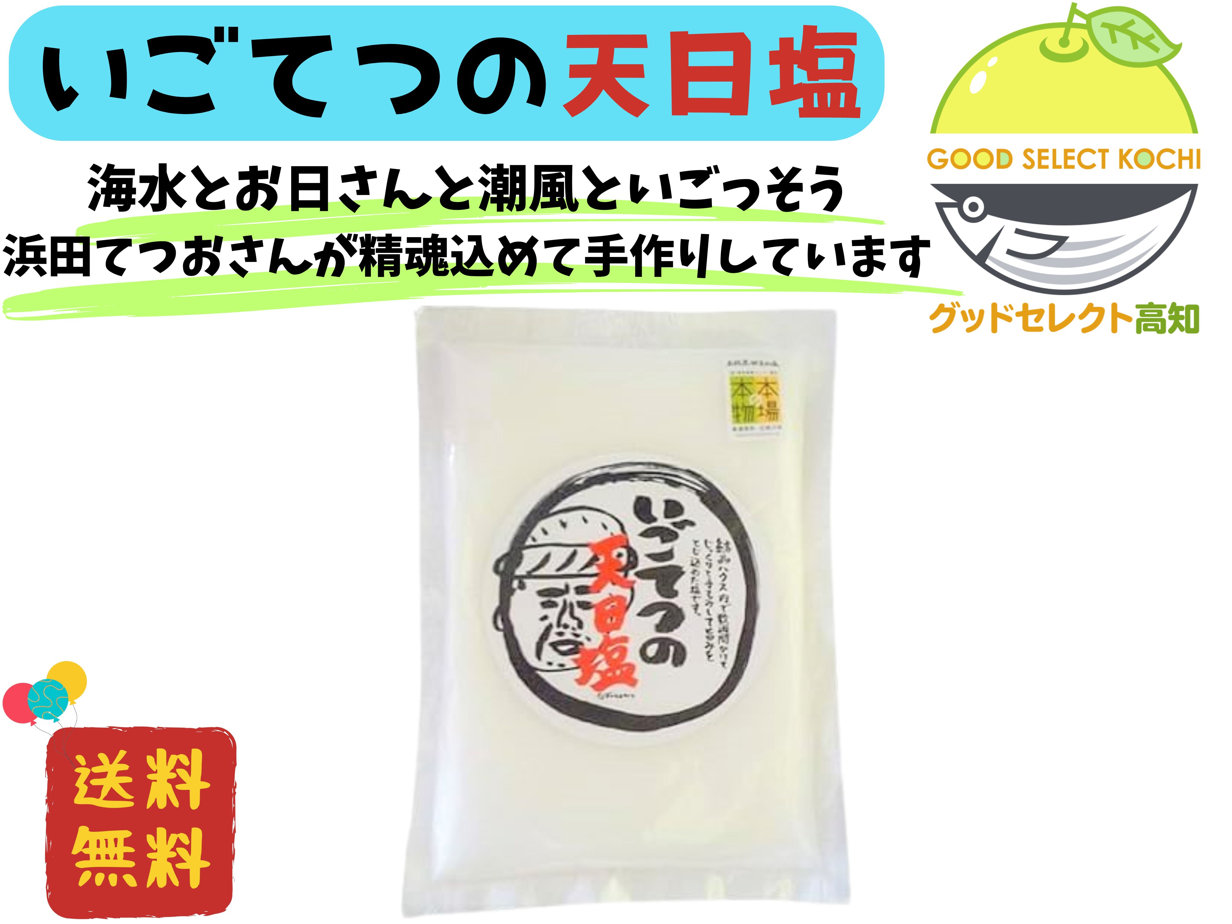 土佐のいごっそう 浜田哲男が作った天日干し塩。 佐賀で生まれ佐賀の海で育った男が愛情を込めて手作りしています。 黒潮町のきれいな海水を山の中腹まで運び、毎日手もみしながら太陽と風力の自然エネルギーだけでゆっくりと結晶させた天日塩。海の栄養分が多く含まれていて、塩でありながら辛みのマイルドさとふくよかな甘味で素材の旨味をいっそう引き立てます。