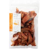 通常の鰹節よりも、1.水分量が多く含まれていること 2.分厚く削っていることが特徴です。程よくしっとり感があるのでビーフジャーキーのようにそのまま召し上がっていただけます。焙乾期間を短くし(通常の鰹節は1カ月だが新節は約3日間)、厚めに削っていますので、口の中に入れるとスモーキーな香りが広がり、噛めば噛むほどに鰹節の旨味を感じることができます。素材そのもののおいしさを感じるには、そのまま食べてほしいと思い、燻製した鰹を分厚めに削りました。従来では料理の立役者として活躍していた鰹節をそのままたべるという贅沢を感じてほしいと考えております。既存商品は帯削りで薄さ0.2〜0.3mm程度のものでしたが、今回の削り方は厚さ0.5mm程度の平削りを採用しているので食べ応えがあり、噛めば噛むほどにかつお節の旨味と香ばしい燻煙の香りが口の中に広がる商品となっております。