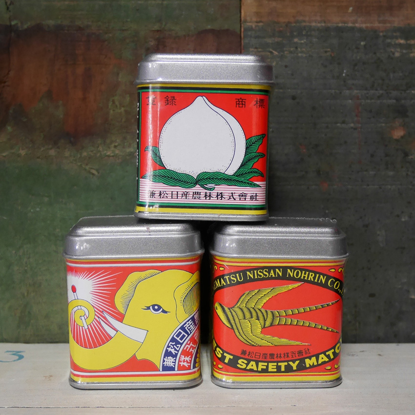 どこか懐かしく、レトロでノスタルジックな雰囲気のするデミタス缶マッチです。明治時代のマッチの復刻デザインで、お馴染みの桃印、象印、燕印が目印。国内シェアNO1を誇った歴史と馴染みのあるデザイン。