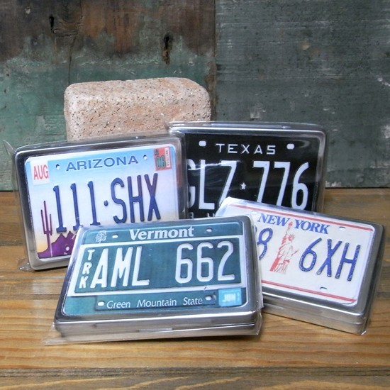 押しピンや薬、アクセサリーなどあると便利なステンレス製のマルチフリー缶です。アメリカ各州のオールドナンバープレートがレトロな感じでとってもおしゃれです。複数個棚並べてお部屋のインテリアとしていい感じです。ペットのおやつ入れなど、携帯にも便利なサイズです。