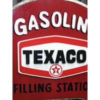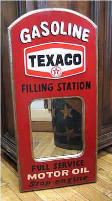 アンティーク仕上げのテキサコオイル壁掛けミラーです。SHOPやガレージインテリアにもおすすめ。