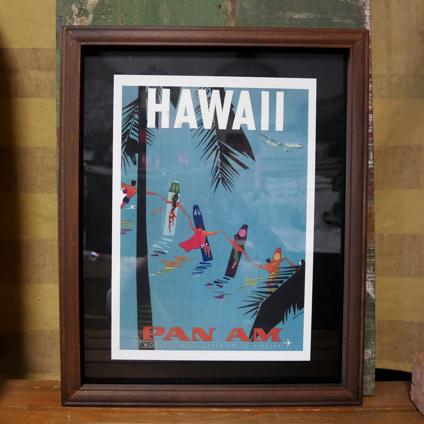 ODハワイアン フレームポスター PA SUFERS パンナム航空 インテリアピクチャー PANAM HAWAIIAN FRAME POSTER インテリア