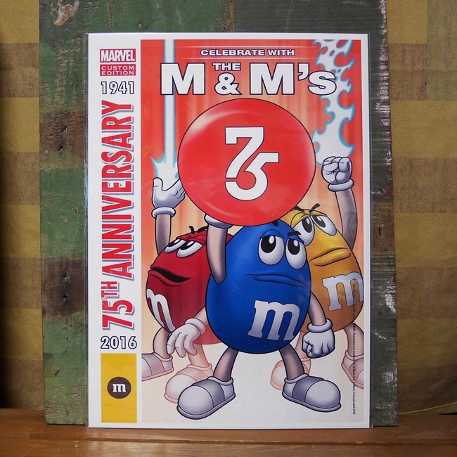 アメリカ発祥のお馴染みのチョコレート菓子m&m'sのインテリアポスターです。m&m's生誕75周年を記念して、m&m'sとMARVELがコラボレーションした際のポスター。
