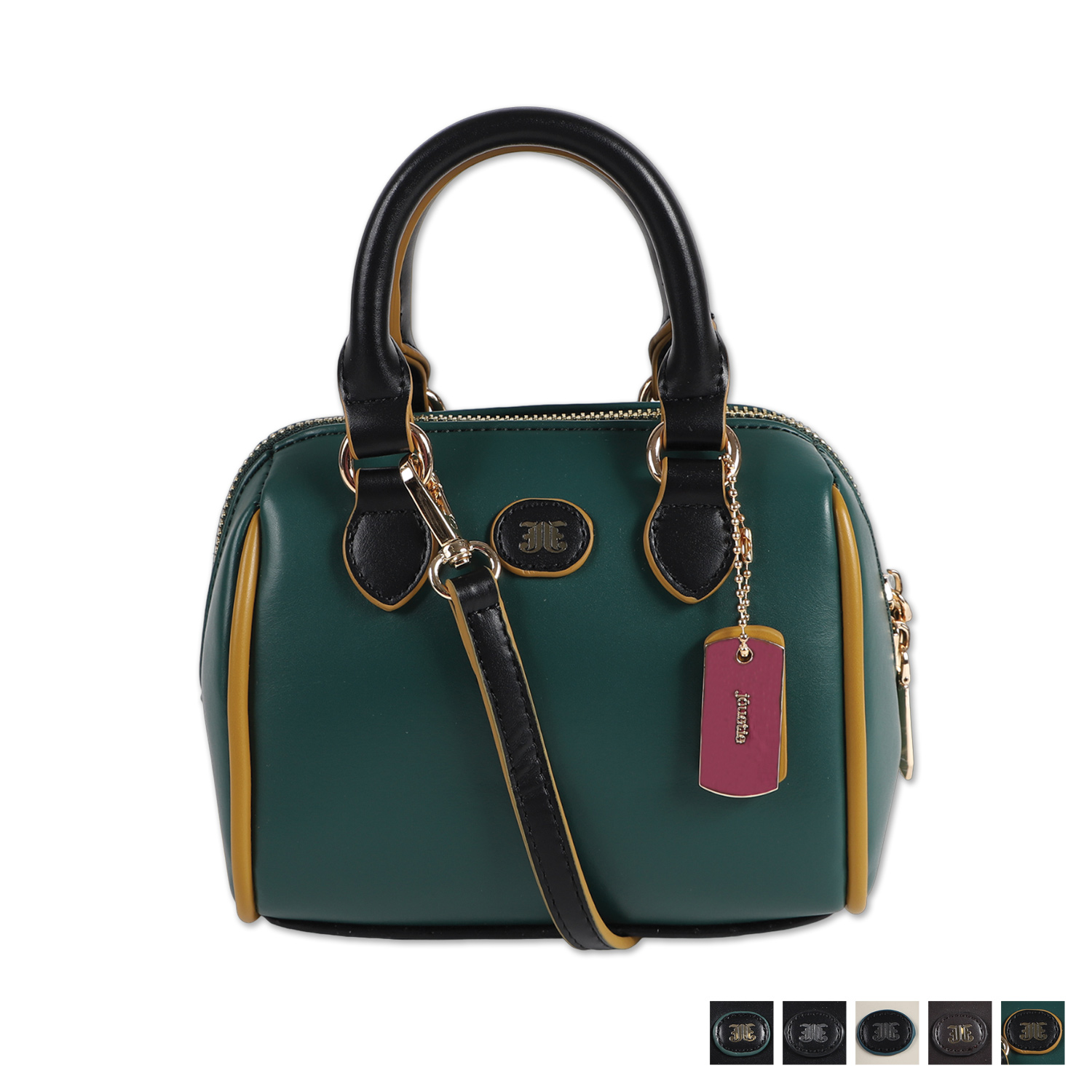 丸みのあるコロンと小さめなサイズ感がトレンドのミニボストンバッグに、コバ(縁)のカラーを配色にし、エッジを効かせたバッグです。付属のボールチェーンドッグタグがjouetieならではの個性を演出します。必要最低限の荷物を入れてアクセサリー感覚で持つことができます。豊富なカラーバリエーションの中から、普段と違う色で遊んでみるのも楽しみの一つ。手持ちはもちろん、ショルダーストラップを短めにしたスタイルアップも狙える使い方がトレンドです。