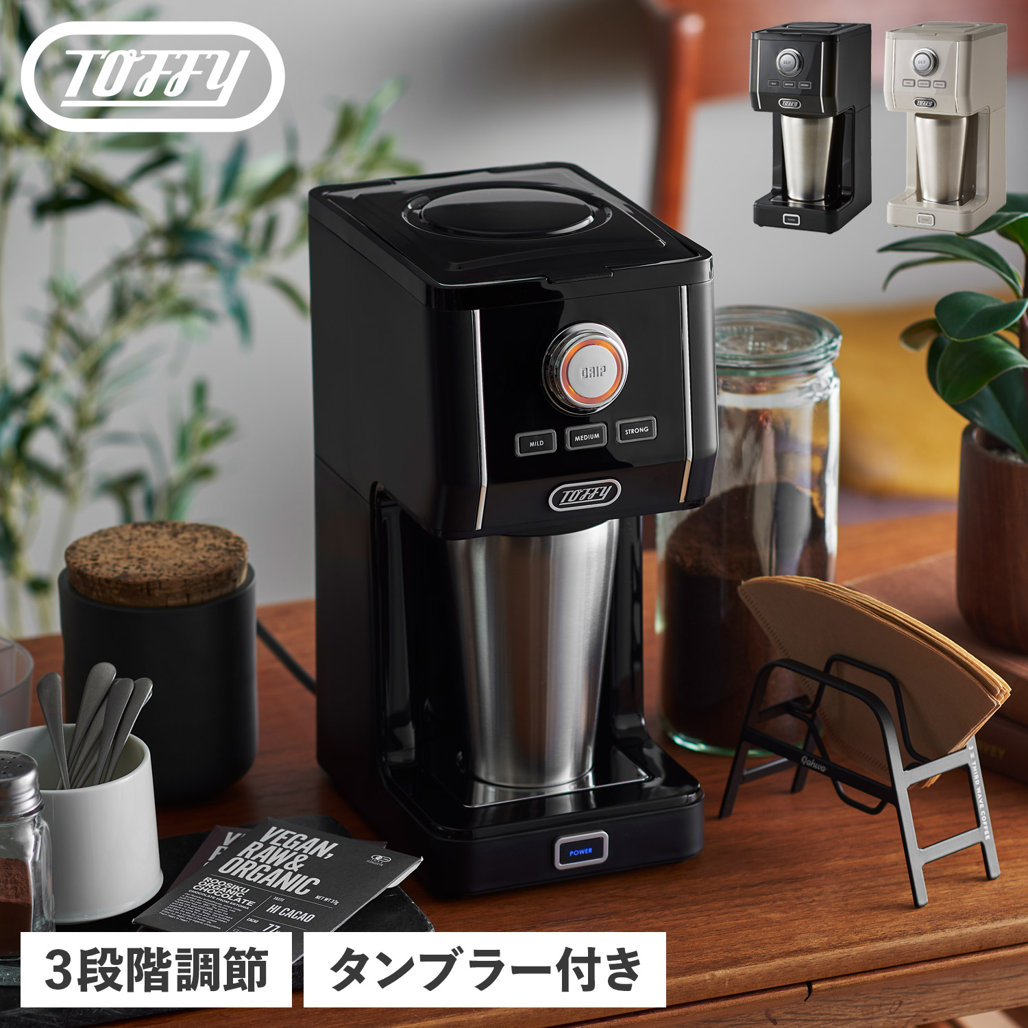 Toffy トフィー コーヒーメーカー コーヒーマシーン ステンレスタンブラー付き 保冷 保温 ホット アイス 濃さ調節 コンパクト フタ 真空断熱 K-CM12