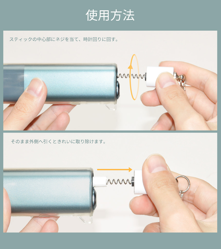 キーチェーン付きなので、ベルトループやキーホルダー等に取り付けて持ち運ぶことができます。