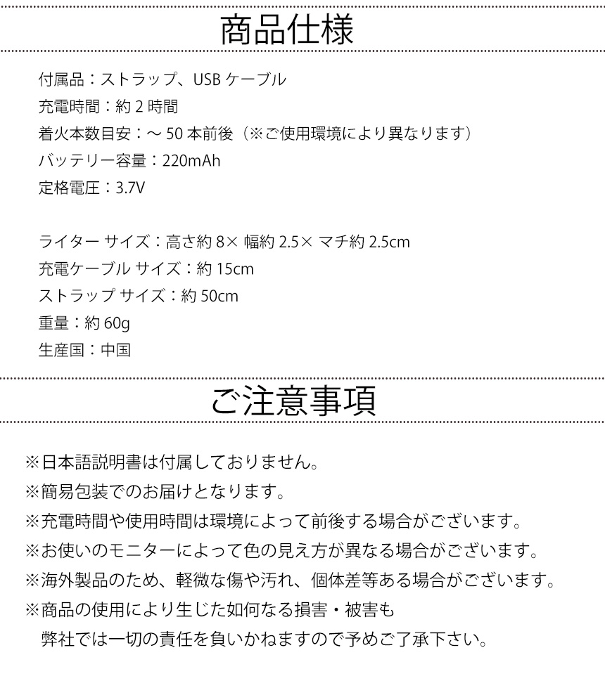 着火本数目安:〜50本前後(※ご使用環境により異なります)