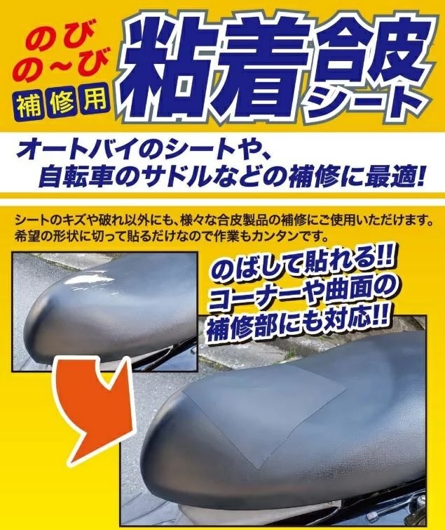 のびの〜び粘着合皮シート バイク・自転車のシート・サドル補修に!