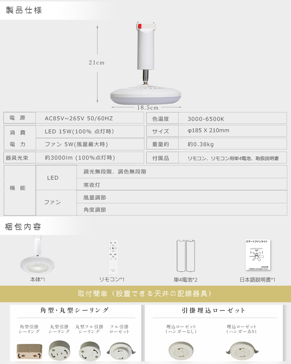 | ■調色機能 | 無段階調色 (電球色3000K〜昼光色6000K) |