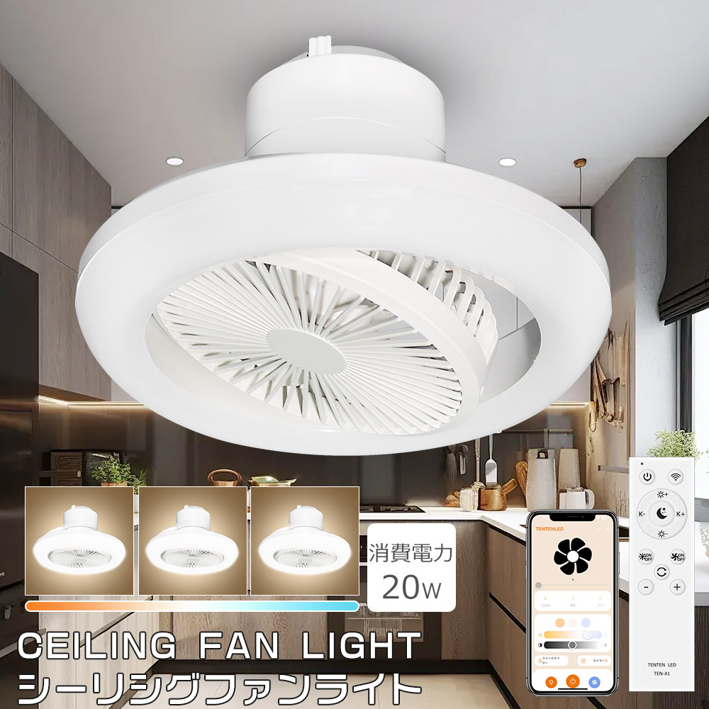 | 色温度・明るさ調節可能なファンシーリングライト | ■シーリングライトは、3000K(暖色光)から4500K(中性光)、6000K(白色光)までの3段階の色温度調節が可能。明るさも10%から100%まで自由に調整できます。ファンライトは、リモコンとモバイルアプリで簡単に操作でき、さまざまな設定を自在に変更できます。 |