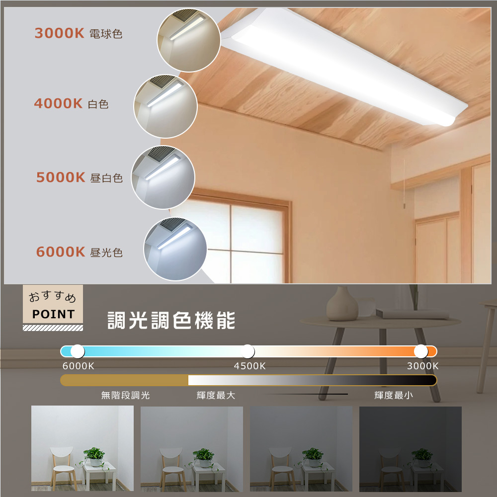 | 特徴 | ★【器具一体構造LED蛍光灯60mm薄型】電源配線するだけでそのまま使えます。一体型照明なので、見た目は薄型でスタイリッシュ。天井をすっきりさせ、スペースの節約に役立ちます。 ★【電力削減】高発光効率200lm/wでコストを抑えた逆富士型LEDベースライト。1台で蛍光管2本の明るさを実現。高輝度と省エネを両立できます。 ★【リモコン&スマート制御対応】リモコンとスマート制御に対応したLEDライトです。明るさや色温度の調整、常夜灯モードの切替などがリモコンで簡単に操作可能。さらに、スマートフォンアプリと連携することで、遠隔操作やスケジュール設定、グループ制御など多彩なスマート機能が利用可能です。 ★【無段階調光・調色で快適空間】無段階調光&調色対応。シーンや気分に合わせて、明るさや色温度を自由に調整できます。読書やリラックスタイム、おやすみ前など、あらゆる生活シーンにぴったりの光を演出します。 ★【おやすみ前も安心タイマー機能】タイマー機能付きで、設定した時間に自動で点灯・消灯が可能。就寝前や起床時、外出時などに便利で、無駄な電力を抑え、省エネにもつながります。 ★【便利な記憶機能付き】記憶機能を搭載しており、電源を切っても最後に設定した明るさや色温度を自動で記憶します。毎回好みの設定をし直す必要がなく、スムーズに理想の光環境を再現可能。忙しい日常でもストレスなく快適にお使いいただけます。 ★【パッと点灯&ちらつきなし】ちらつきなしで安定した光を実現。点灯時の遅延もなく、スイッチを入れた瞬間から快適な明るさをお楽しみいただけます。目に優しく、長時間の使用でも疲れにくい設計です。 ★【発熱量が少ない】LEDは発熱量が少ないため、通常の蛍光灯と比較して光の下でも暑くありません。そのため、夏の空調の節約も期待できます。赤外線や紫外線をほとんど含まないため、色あせなども抑えられます。 ★【高演色性Ra85以上】高演色で照らされた物が目に見える色を再現できます!インテリアには照明に対する要求が大満足です。 ★【適用範囲】リビング、寝室、子供部屋、廊下、玄関など、さまざまな場所に設置可能。住宅だけでなく、オフィスや店舗などにもおすすめです。 |