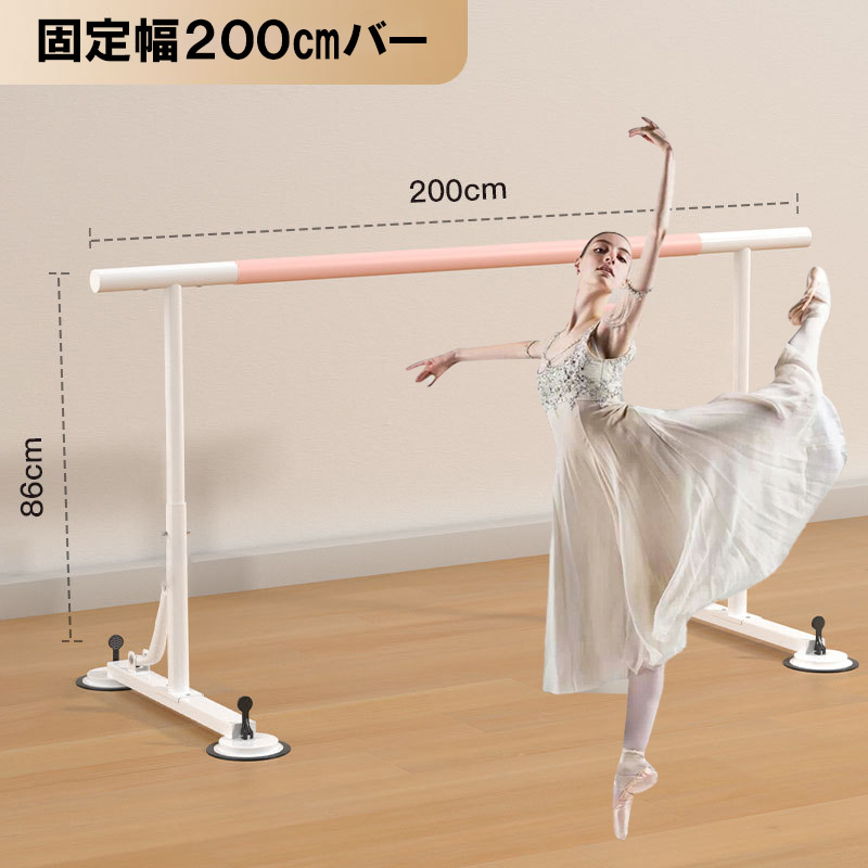 レッスン ダンス バー 高さ固定 幅200cm バレエ 体操 レッスン 自宅 スタジオ 可動式 吸盤 トレーニング エクササイズ 室内 ヨガ 健康 器具 運動