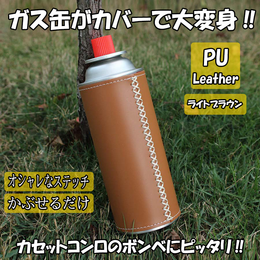 ガス缶カバー ライトブラウン ガスボンベ 250g カセットガス ケース カセットボンベ PUレザー カバー キャンプ アウトドア オシャレ