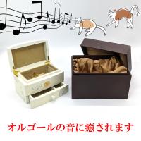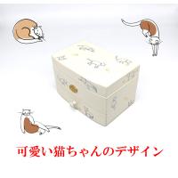 オルゴール ジュエリー ケース 猫柄 アイボリーホワイト 宝石箱 木製 インテリア 雑貨 贈り物 プレゼント ギフト 誕生 結婚 記念 祝 ねこ ネコ ゼンマイ式 音