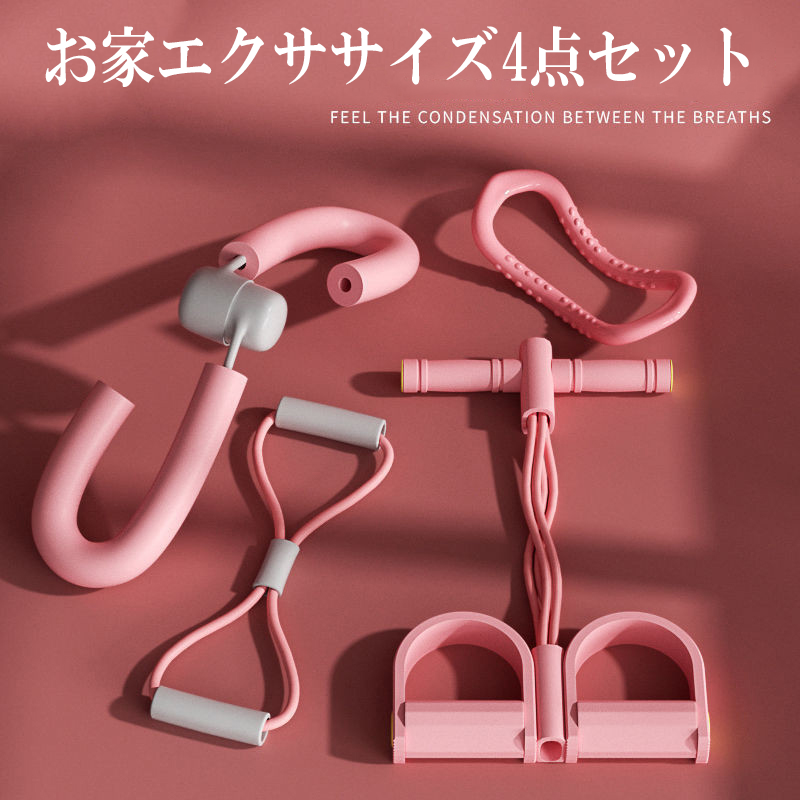 トレーニング ストレッチ 器具4点セット 脚 腕 太もも 背中 首 肩 リリース ヨガ 痩せ 母の日 ダイエット 健康 ストレス リフレッシュ 寝ながら ゴムチューブ