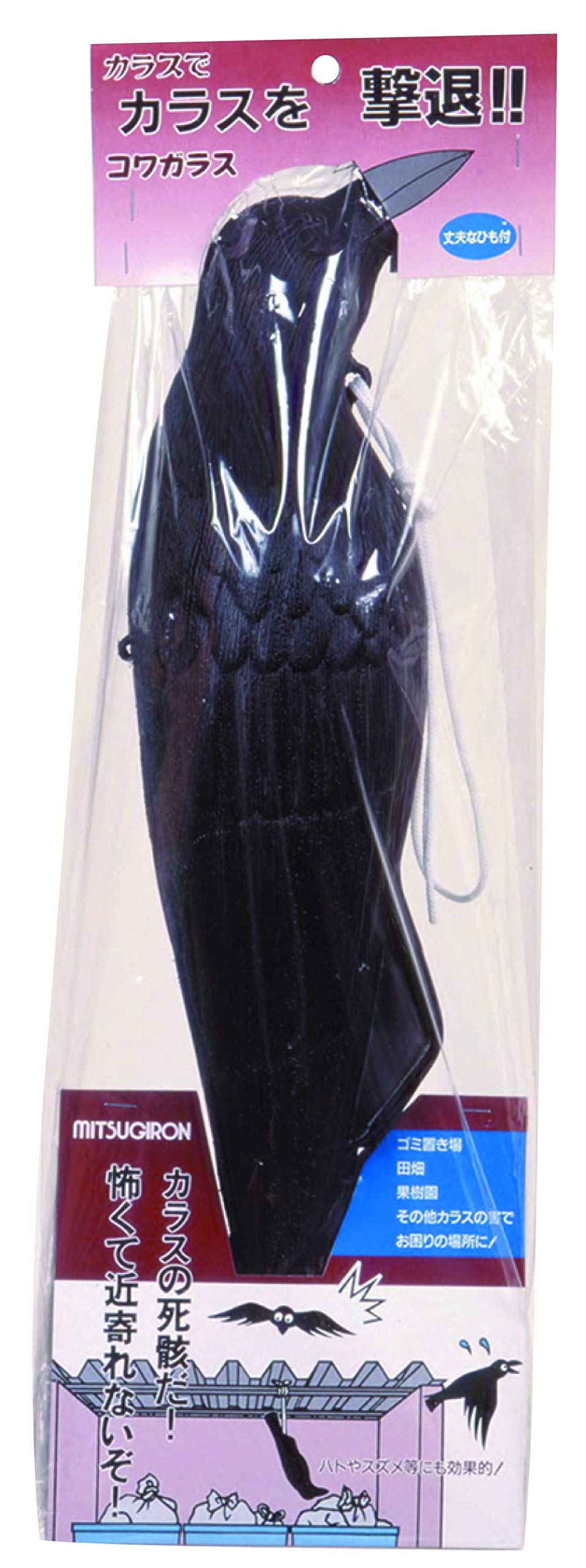 商品名:ミツギロン カラスよけ 吊り下げ ダミーカラス 撃退 ゴミ置き場 畑 果樹園 鳥獣被害対策 コワガラス EG-18 1個入