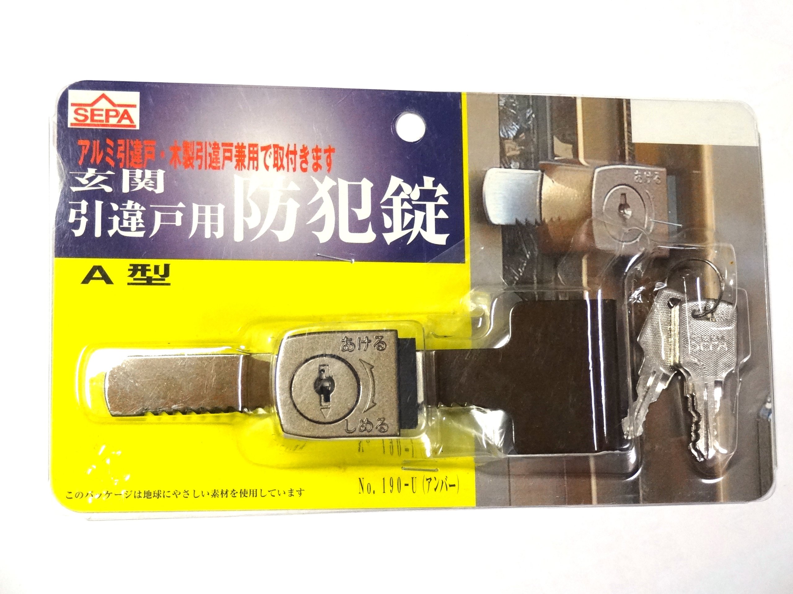 日中製作所 玄関引違戸用防犯錠 A型 3本キー 190-U
