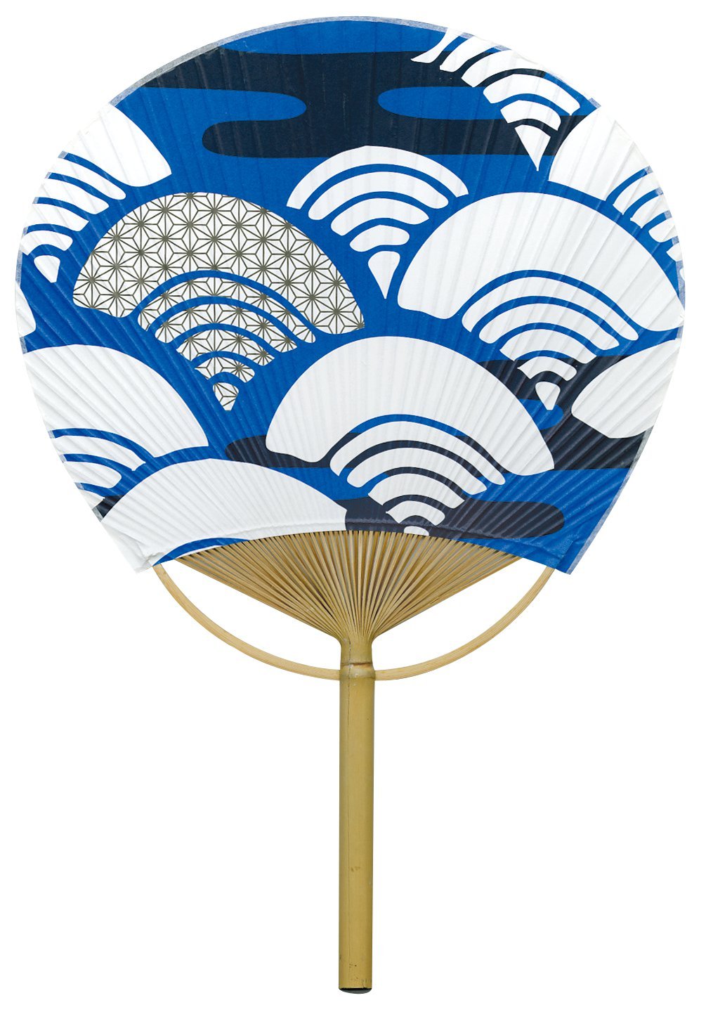 四国団扇 うちわ 麻の葉青海波 青 約28×41cm