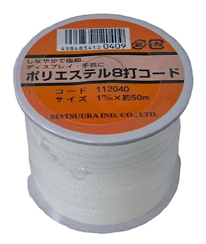 商品名:まつうら工業 ポリエステル製 8打コード 芯入り 太さ約1mm 長さ50m 白 ボビン巻