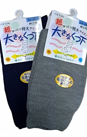 超ゆったり 靴下 特大タイプ むくみ用 紳士 24〜29cm 2足組 (グレー&ネイビー)