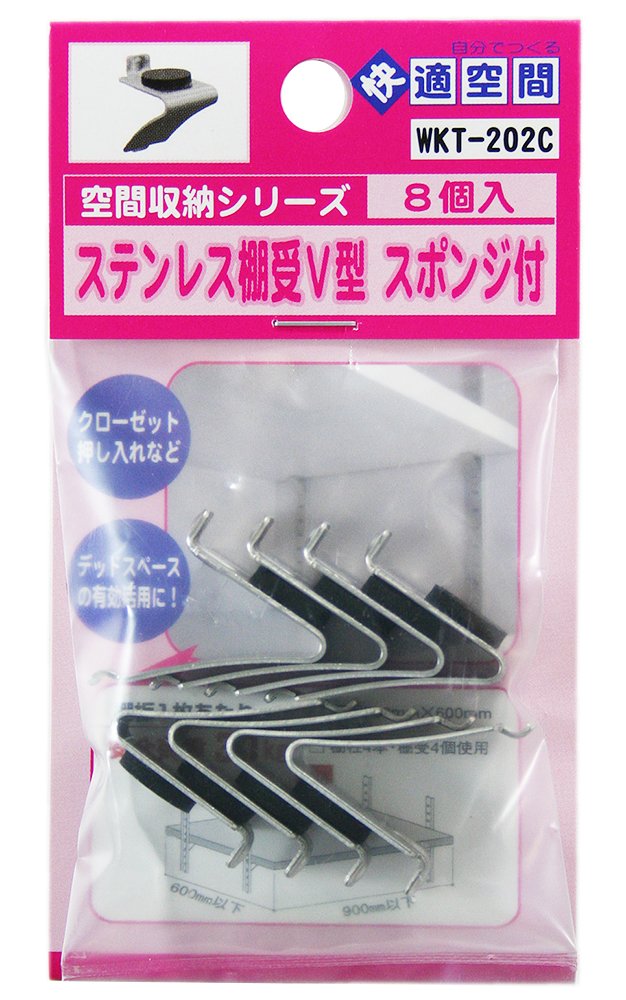 商品名:和気産業(Waki Sangyo) ステンレス棚受V型 スポンジ付 WKT-202C 8個入