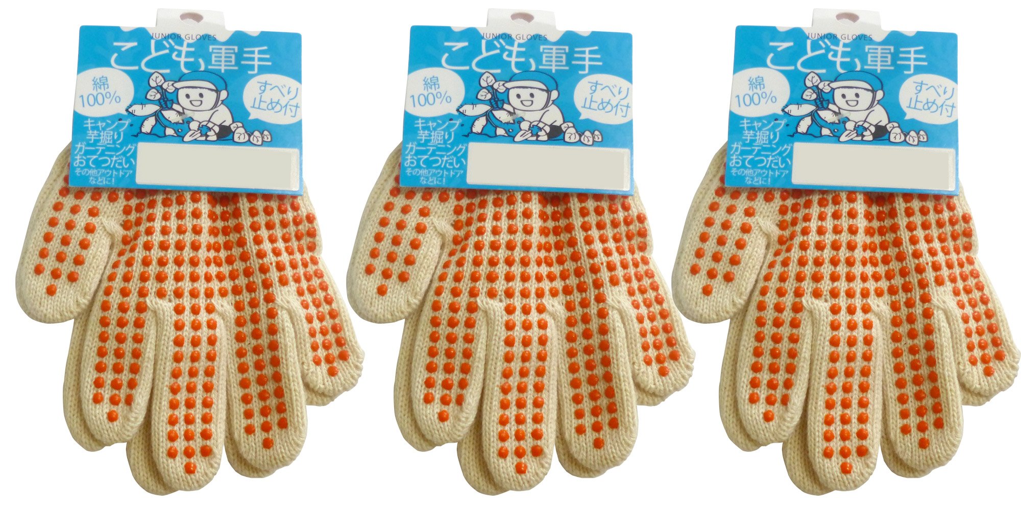 パックスエイジアン こども軍手 すべり止め 3S(3歳~4歳目安) 赤 3双組