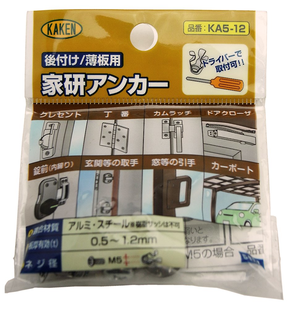 商品名:家研販売 後付け 薄板用 家研アンカー KA5-12