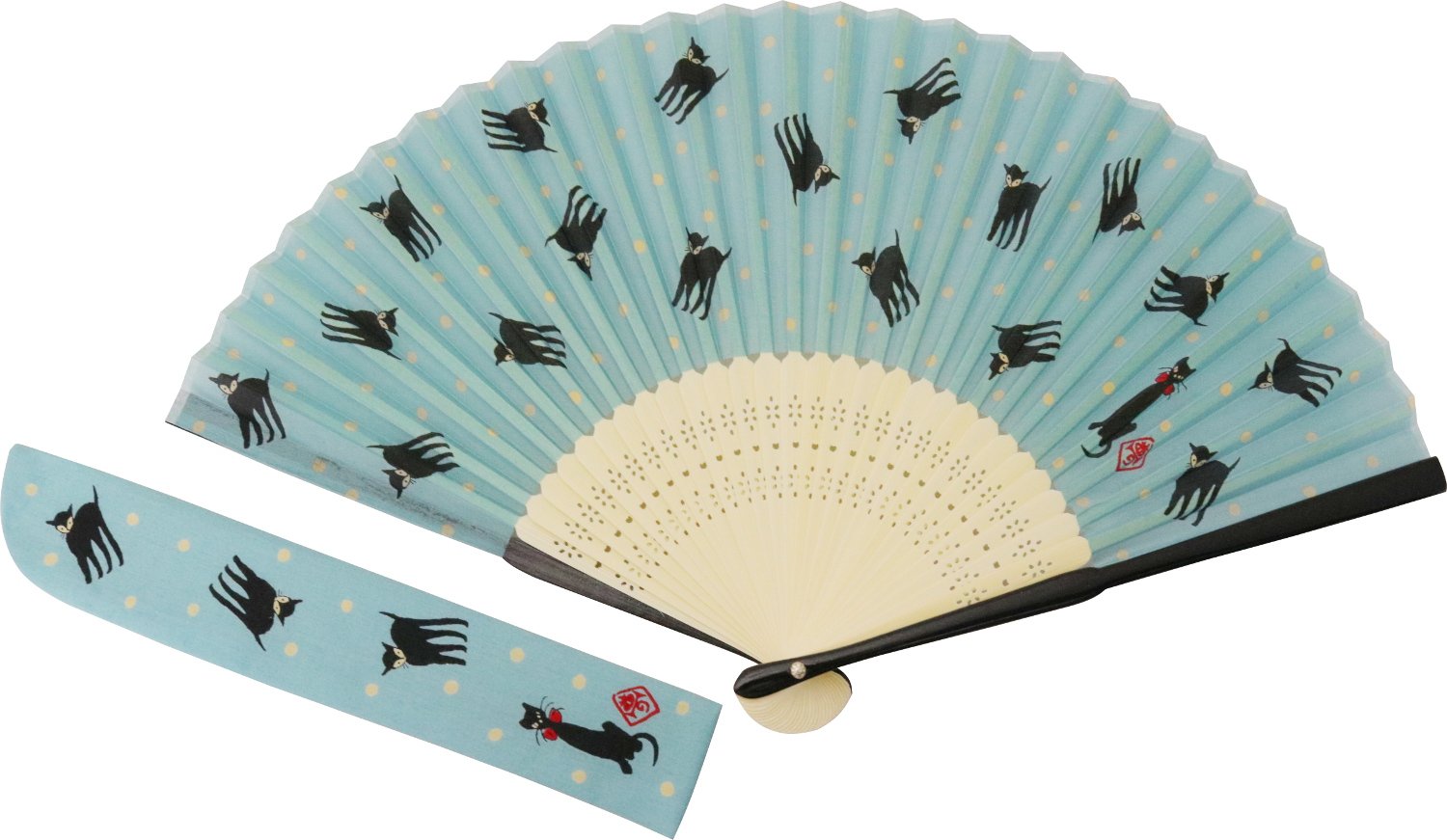 京佑(Kyoyu) 扇子 和雑貨 シルク扇子 袋付 夢二/水玉黒ねこ