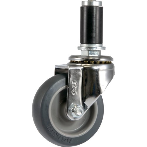 スペーシアパイプに簡単に差し込みができ、軽量でクッション性・磨耗性に優れたエラストマー車輪を採用、自在・固定の用途に合わせ設計できるキャスターです。