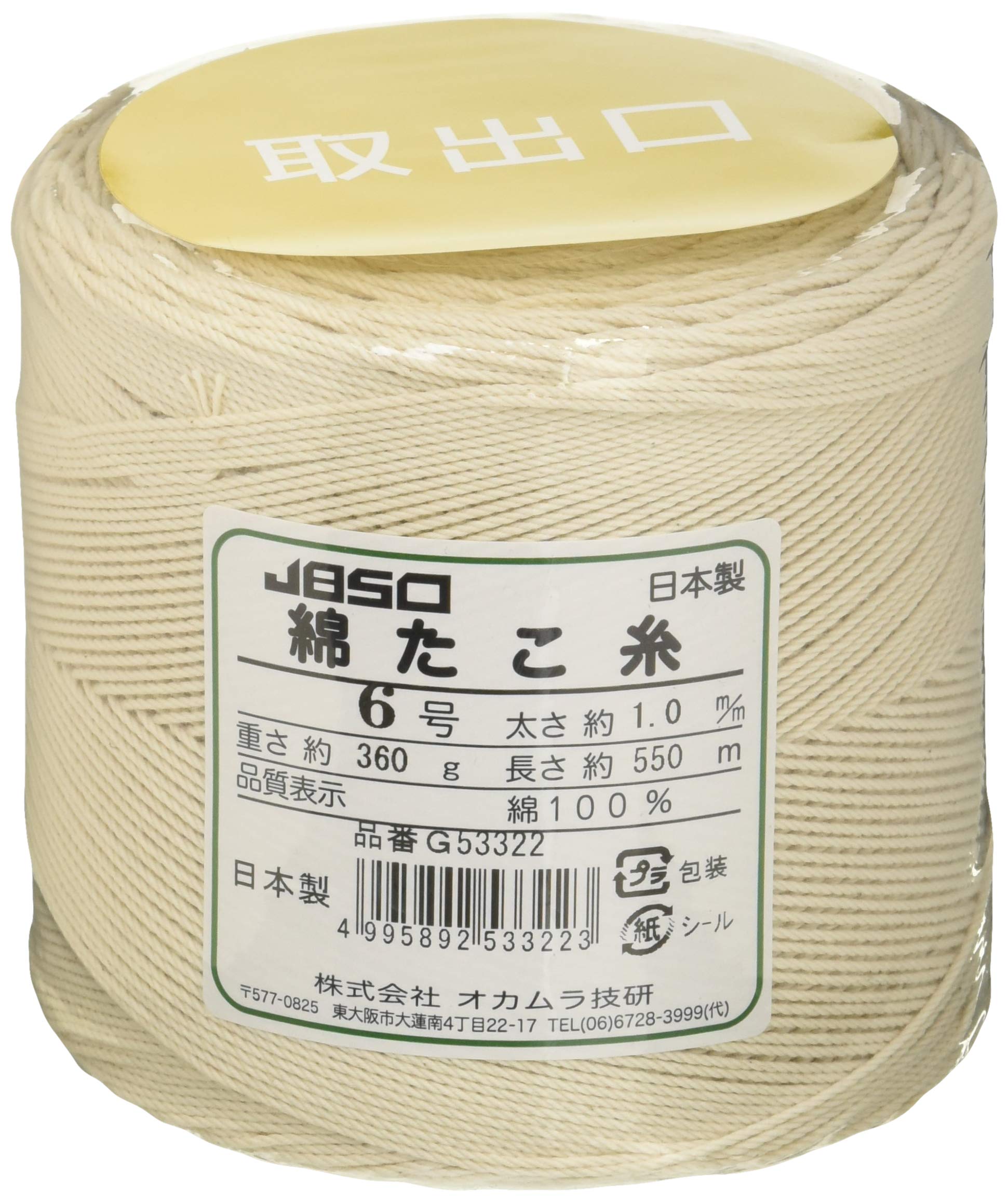 商品名:JBSO 綿たこ糸 360g 6号 550m G53322