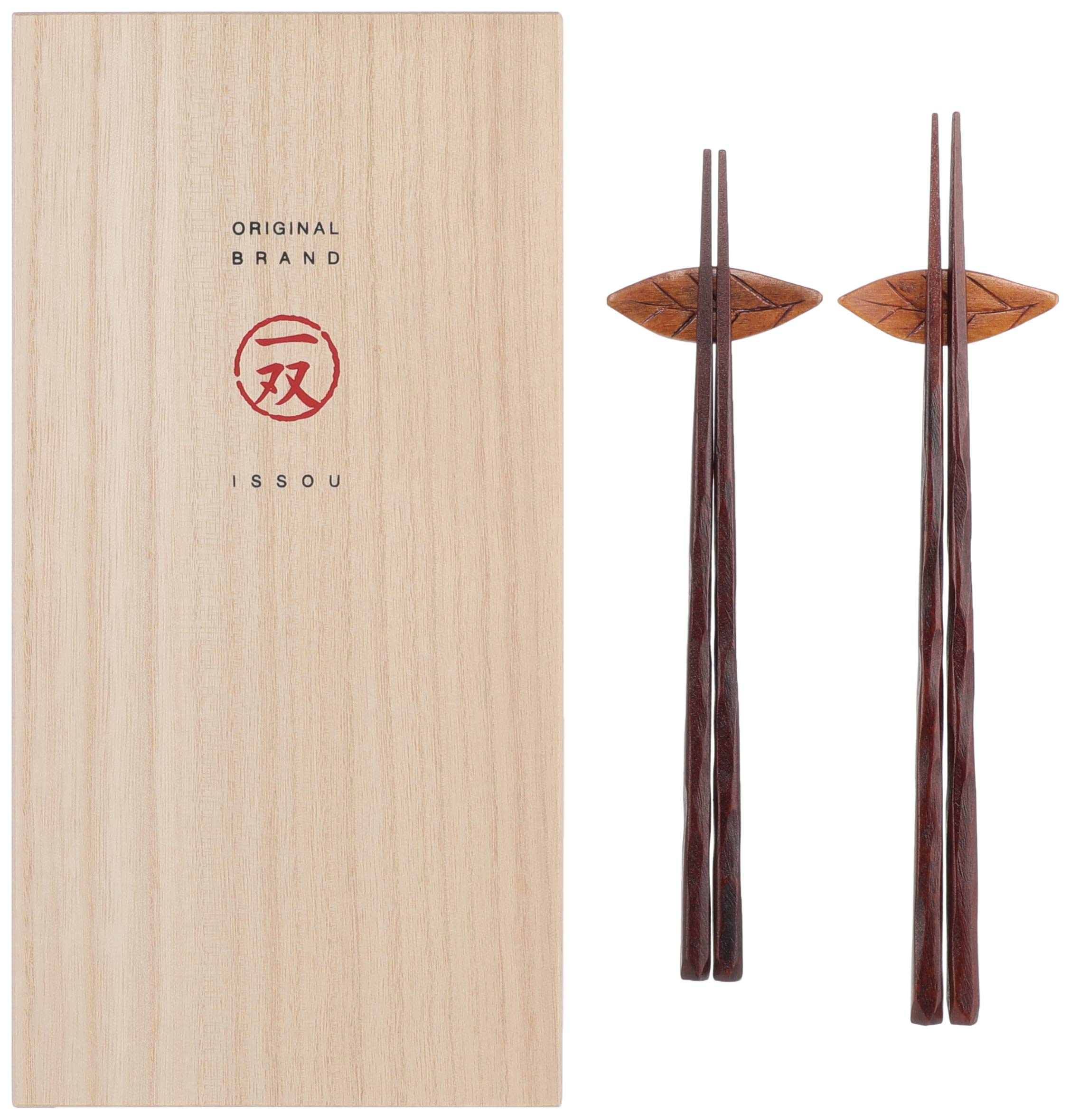 一双 夫婦箸 桐箱入 花梨&箸置ゆずりは 39122