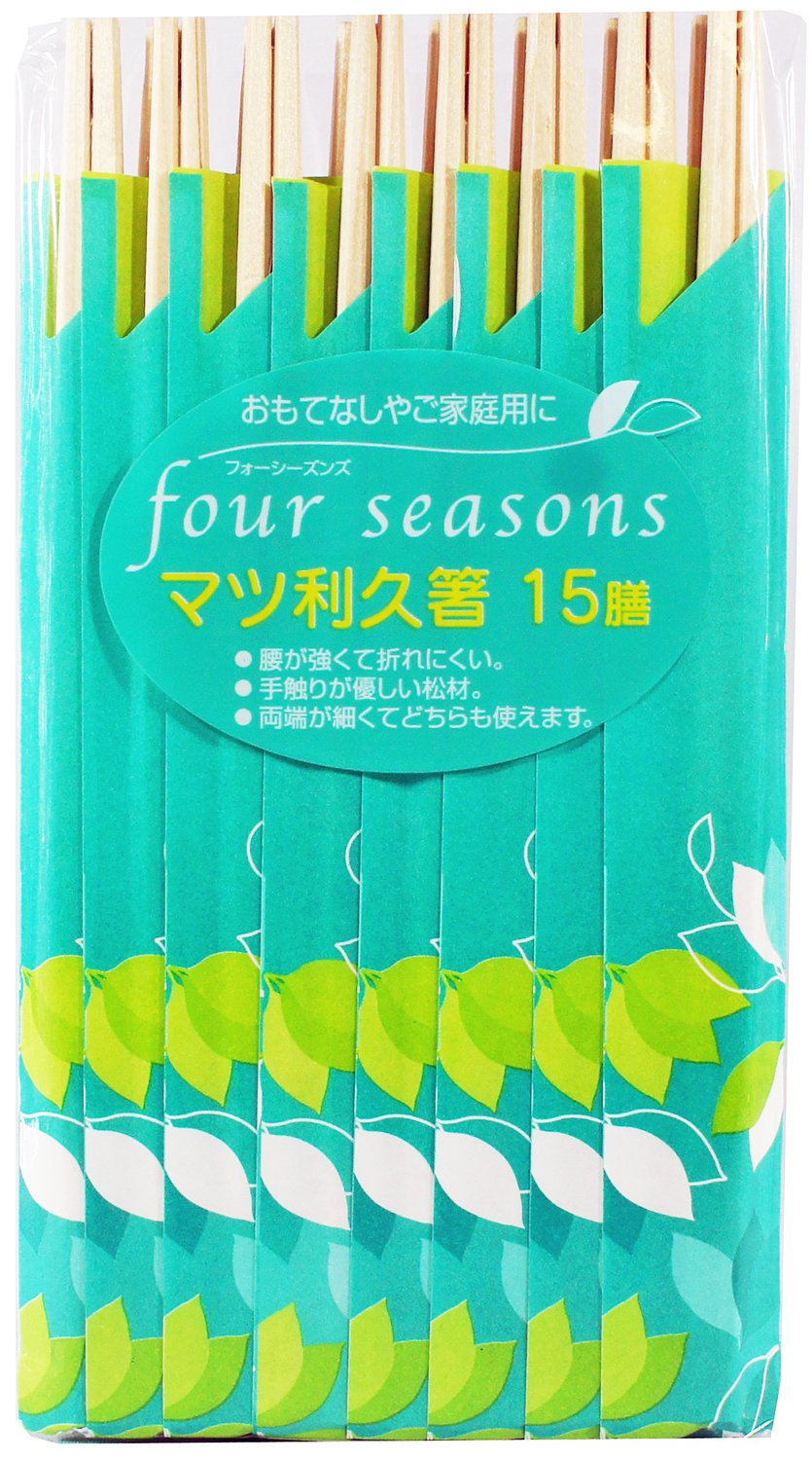大和物産 割りばし ナチュラル 20cm フォーシーズン 利久箸 箸袋入り 15膳入