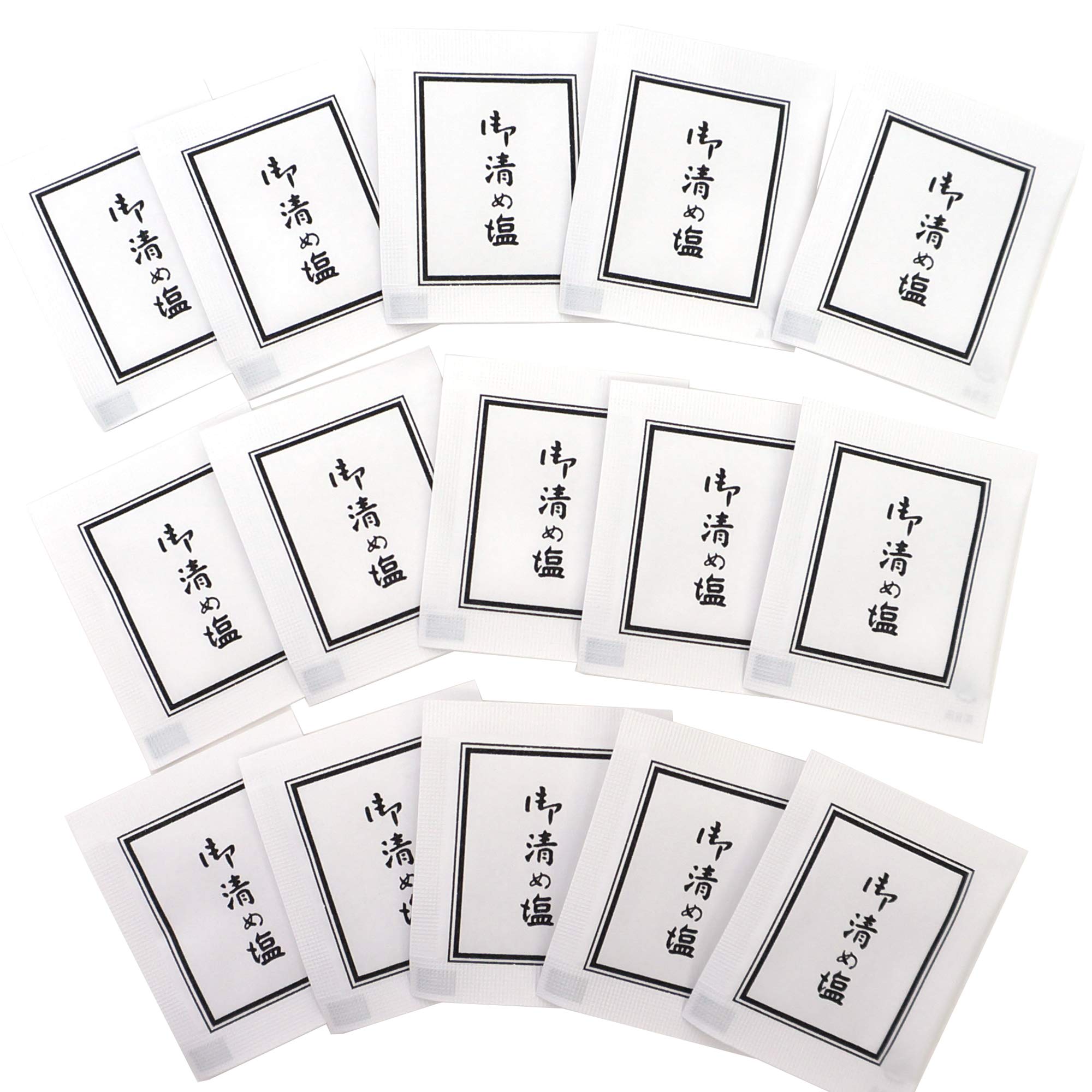 ・1回使い切り用の小袋に入ったお清め塩です。携帯・持ち運びに便利なサイズ。 5cm×6cm×0.2cm ・外出時や帰宅時に手軽に手軽にお清めができます。 ・お清めの塩とは お清めの塩は、一般的に、会葬礼状や香典返しに挟まれています。葬儀に参列した後、自宅に敷居(玄関)をまたぐ前に、玄関先で自分の体に振りまきます。具体的に言うと、通夜や告別式の後に体に振りまきます。 これは、葬儀の場から持ち帰った邪悪な気を家の中に持ち込まないようにするために行われる行為となります。 ・葬儀の規模が大きい場合は、葬儀場の出口に塩が敷かれており、参列者が塩の上を通りお帰り頂くことがあります。これは、お清めの塩を振りまいたのと同じことになります。 ・お清め塩の正しい使い方 まず玄関先で必ず玄関をまたぐ前に使います。玄関をまたいでしまうと、家の中に穢れを持ち込んでしまったと解釈されてしまうため、お清めの意味がありません。そのため必ず玄関をまたぐ前に、そしてお葬式から帰ってきたらすぐに撒きます。 続いて、お清めの塩を振りかける順番ですが、胸、背中、足下の順番で行うことが望ましいと言われています。これは血流の巡っていく順番であり、穢れは血の巡りに沿って全身を巡ってしまうと考えられているためです。振りかける塩の量はひとつまみ程度で十分だとされています。また、振りかけた後の塩は穢れを持ってしまっているので必ず払ってから家の中に入るようにしましょう。 ちなみに、振り掛ける行為を自分で行っている人がほとんどかと思いますが、お清めの塩は人に振り掛けてもらった方が望ましいとされています。単身者の場合は1人で行っても構いませんが、家族がいる場合はできる限り家族にやってもらうようにするとより清めの効果が高くなります。