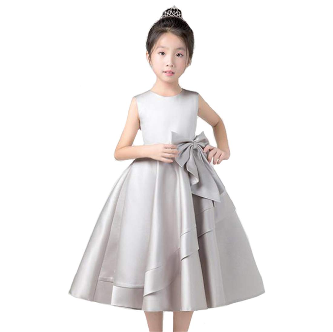 商品名:発表会ドレス 子供 キッズドレス 大きなリボン 舞台 衣装 女の子 フォーマル 演奏会 結婚式 七五三 子供服 (140cm グレー)