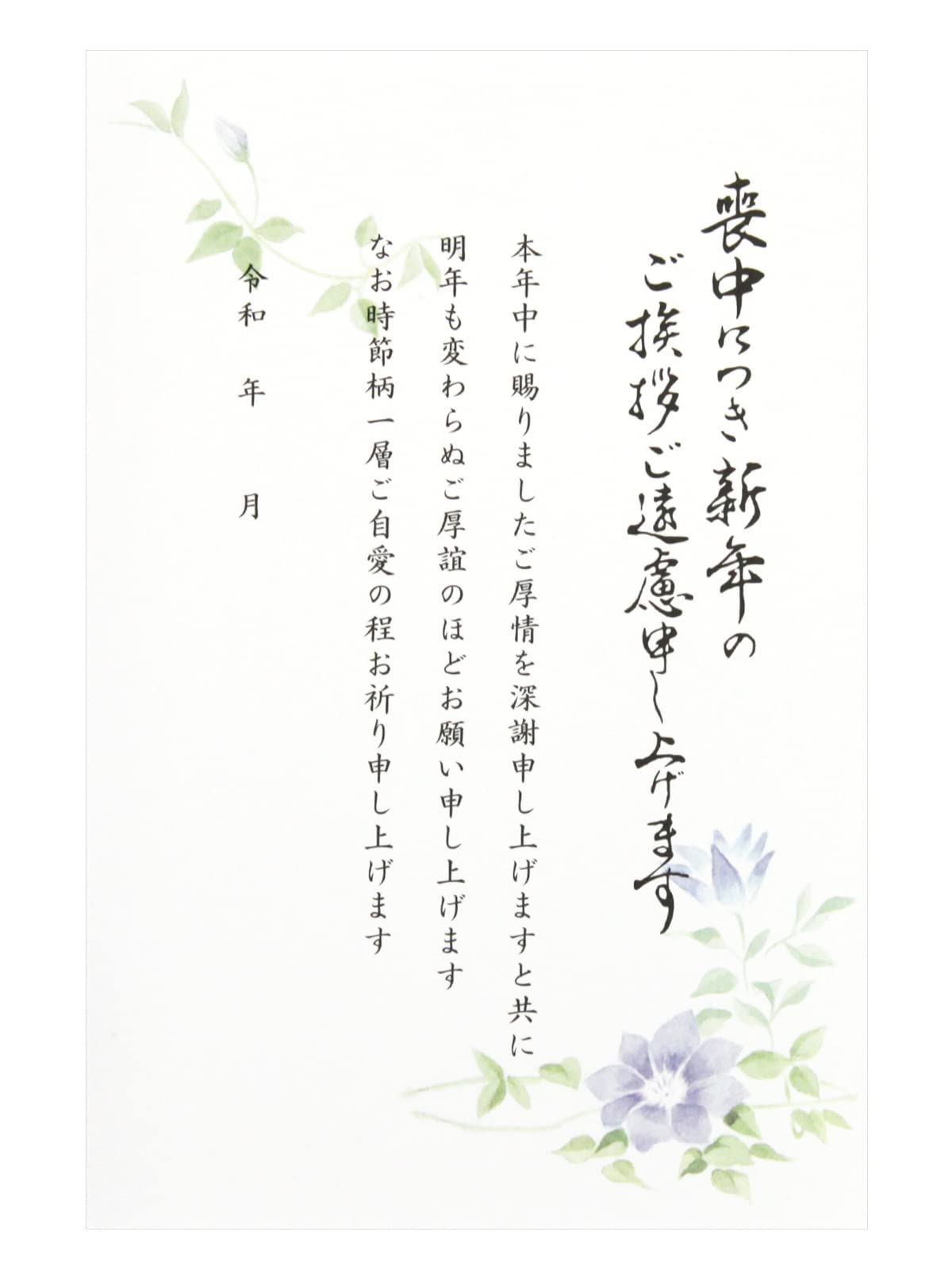 文章印刷済み はがき 20枚 クレマチス 喪中文章