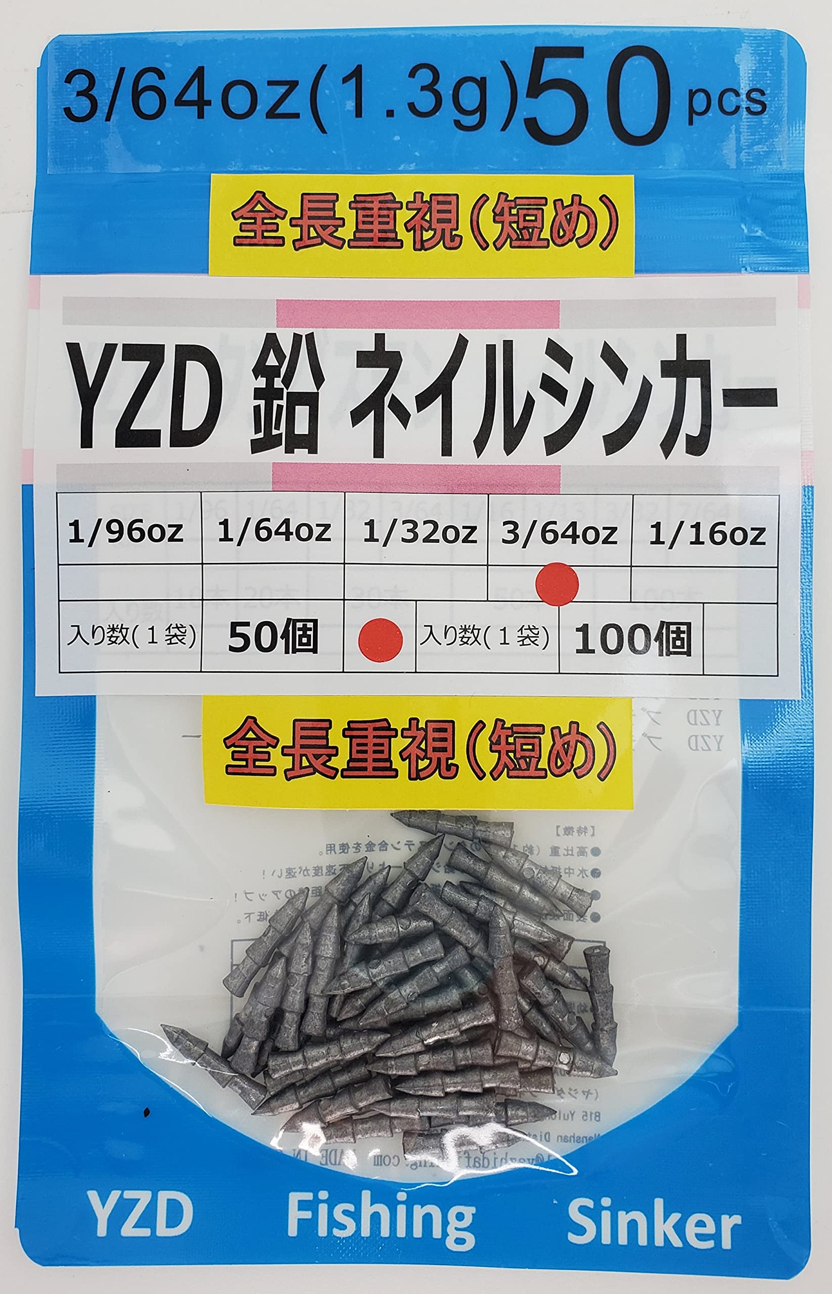 商品名:YZD ネイルシンカー 1.3g 3/64oz【50本 】全長重視 短め