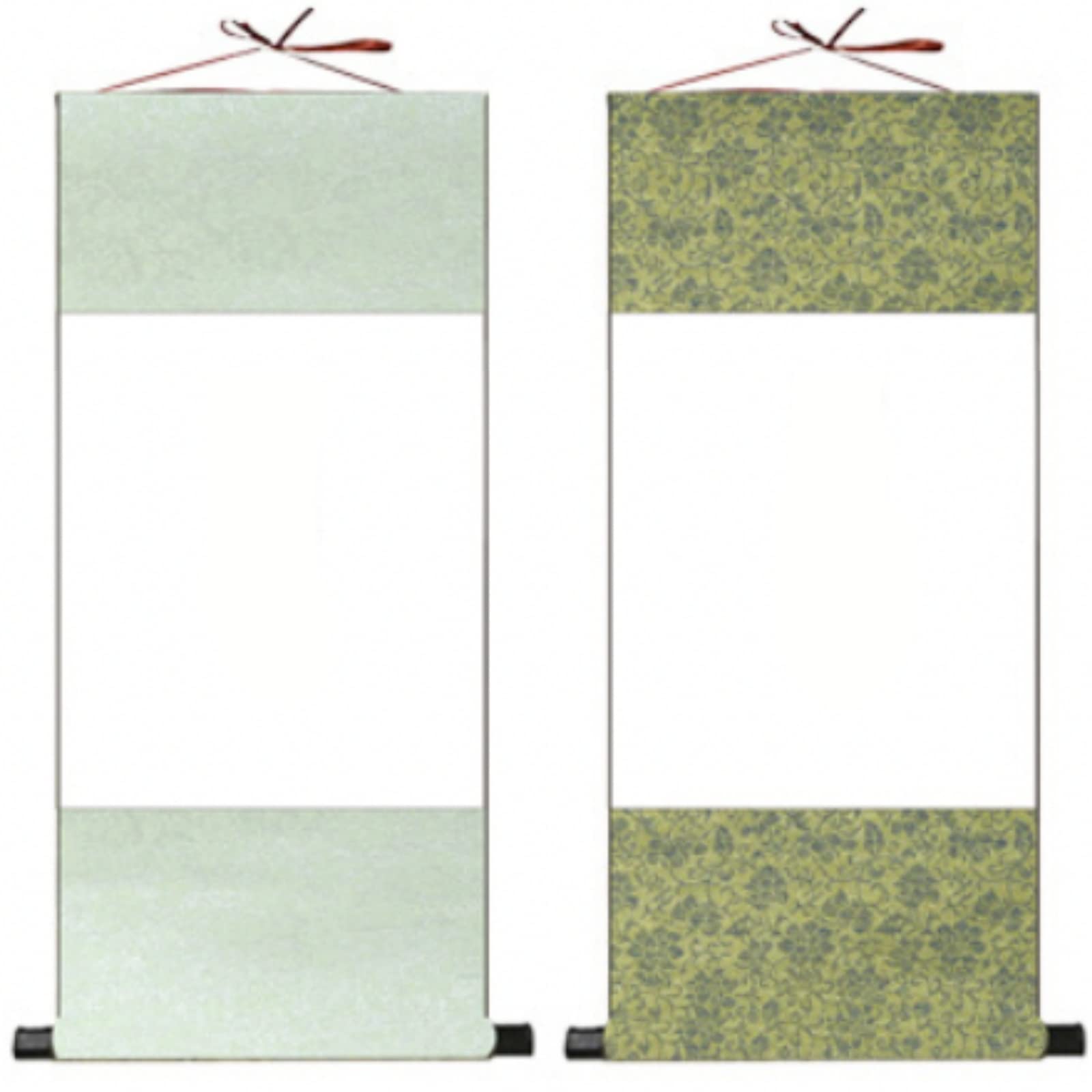 商品名:Sweet Plus 掛け軸 白紙 画仙紙 半紙 書道 習字 水墨画 日本画 色紙 書き初め 無地 和紙 装丁済 展示 展覧会 紐付き 縦 2本 (シルバー・グリーン)