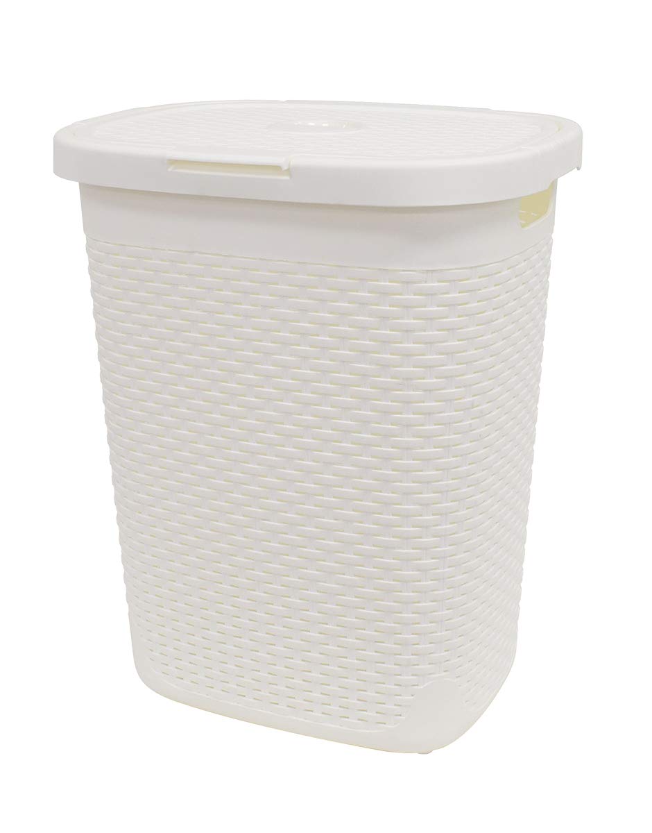 セイエイ(seiei) 【 ラタン調 蓋付き バスケット 50L ホワイト 120444 】横型 かご 収納 洗濯 ラタン調