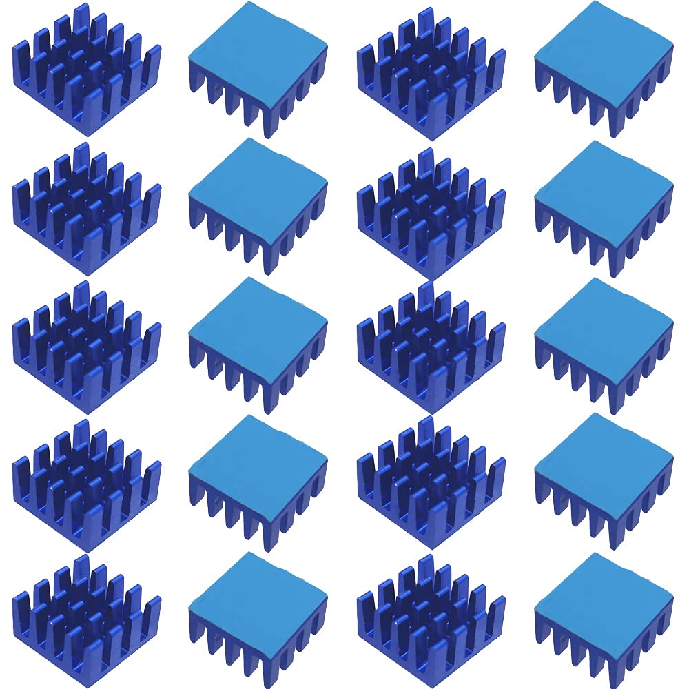商品名:CTRICALVER アルミ ヒートシンク 14 x14 x 7mm (L*W*H), サーマルパッド付き, 3Dプリンターを冷却するために使用されます(20 個, 青)
