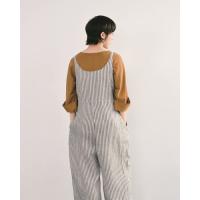 身幅にゆとりがあるのにすっきりと着こなせるフォルムが魅力的。ナチュラルな雰囲気がおしゃれな先染めのリネンストライプの生地を選ぶと