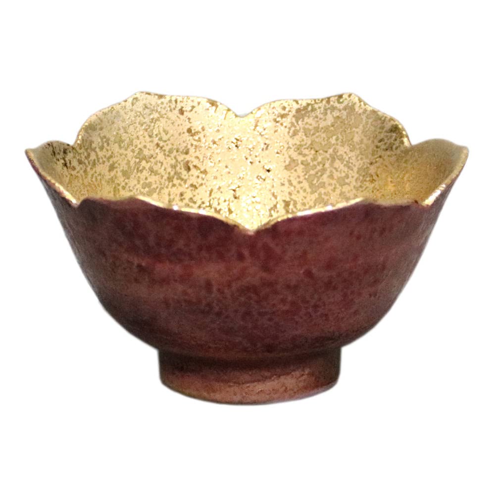 九谷焼 双鳩窯 桔梗型小鉢 色箔彩 赤 磁器