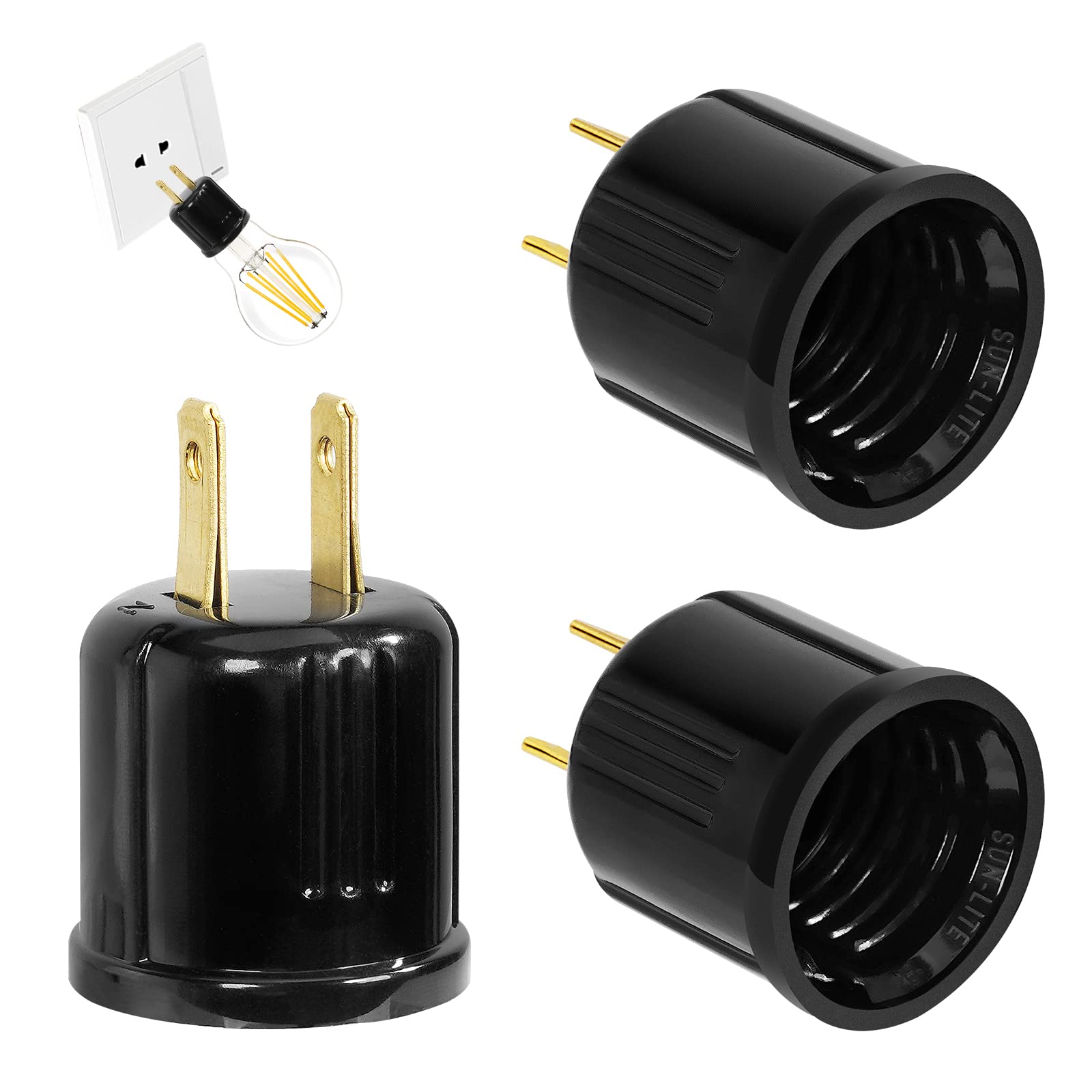 Aiwode 電球ソケット ソケット変換コンセントアダプター E26用 ソケット付きコンセントプラグ 電球ソケットE26口金 変換ソケット 黒い 3個
