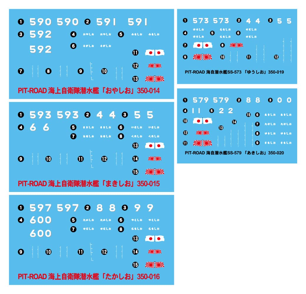 商品名:ピットロード 1/350 オリジナルデカール 海上自衛隊 潜水艦用 (おやしお型・ゆうしお型用 5枚) プラモデル用デカール DP12