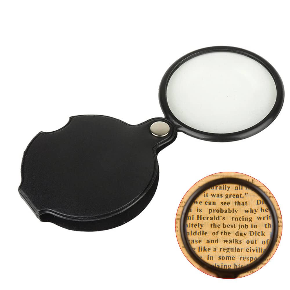 AAGWW ポケットルーペ8倍倍率手持ちルーペ携帯用折りたたみ式ルーペ革ケース収納に便利携帯用(直径50mm厚みレンズ、色:黒)