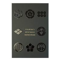 表面には戦国武将の兜を、裏面には家紋をあしらった、シンプルでスタイリッシュな御城印帳。