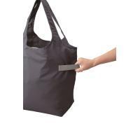 ゴムがついており、未使用時は折りたたんでコンパクトに持ち運ぶことができます。口元はファスナー仕様となっているので、中身が飛び出る心配がありません。