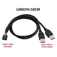 マザーボード 9ピン 10ピン メス ハウジング - デュアル USB 2.0 オス Type-A ケーブル 50cm