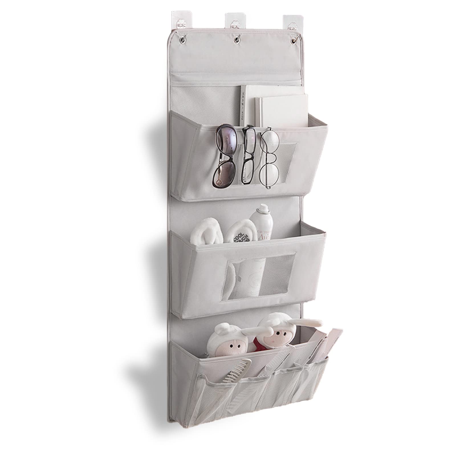 ALLMIRA ウォールポケット 壁掛け 収納 大容量 シンプル クローゼット 玄関 洗面所 洗えます (3層 グレー) (2層 ベージュ) (三層