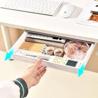 Forthcan デスク下 収納 引き出し 文房具収納 引き出し 後付け 小物収納 トレー 引き出し 机下収納 収納ホルダー (ホワイト, L)