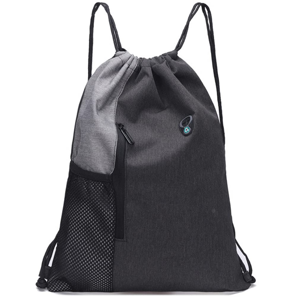 [FUPUTWO] ナップサック スポーツ ジムサック 防水 軽量 プールバッグ 無地 手提げ 巾着 (グレー)